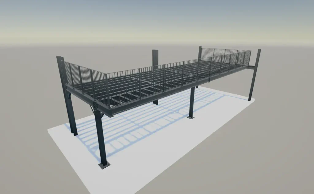 Our team was commissioned to produce detailed fabrication drawings for a new mezzanine structure for a local gymnastics club. The platform, measuring approximately 12m x 3m x 3m high and weighing around 4 tonnes, was designed to be robust and efficient, ensuring a smooth installation and seamless handover to the client.